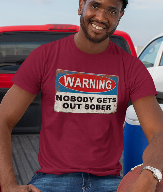 Warning Nobody Gets Out Sober Sign Shirt | Funny Drinking Shirt