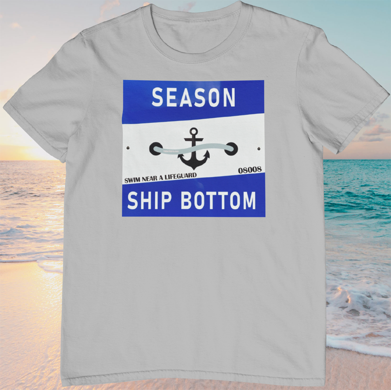 Get your Ship Bottom Beach Badge t-shirt today. Available in white or grey and sizes small through XXXL.